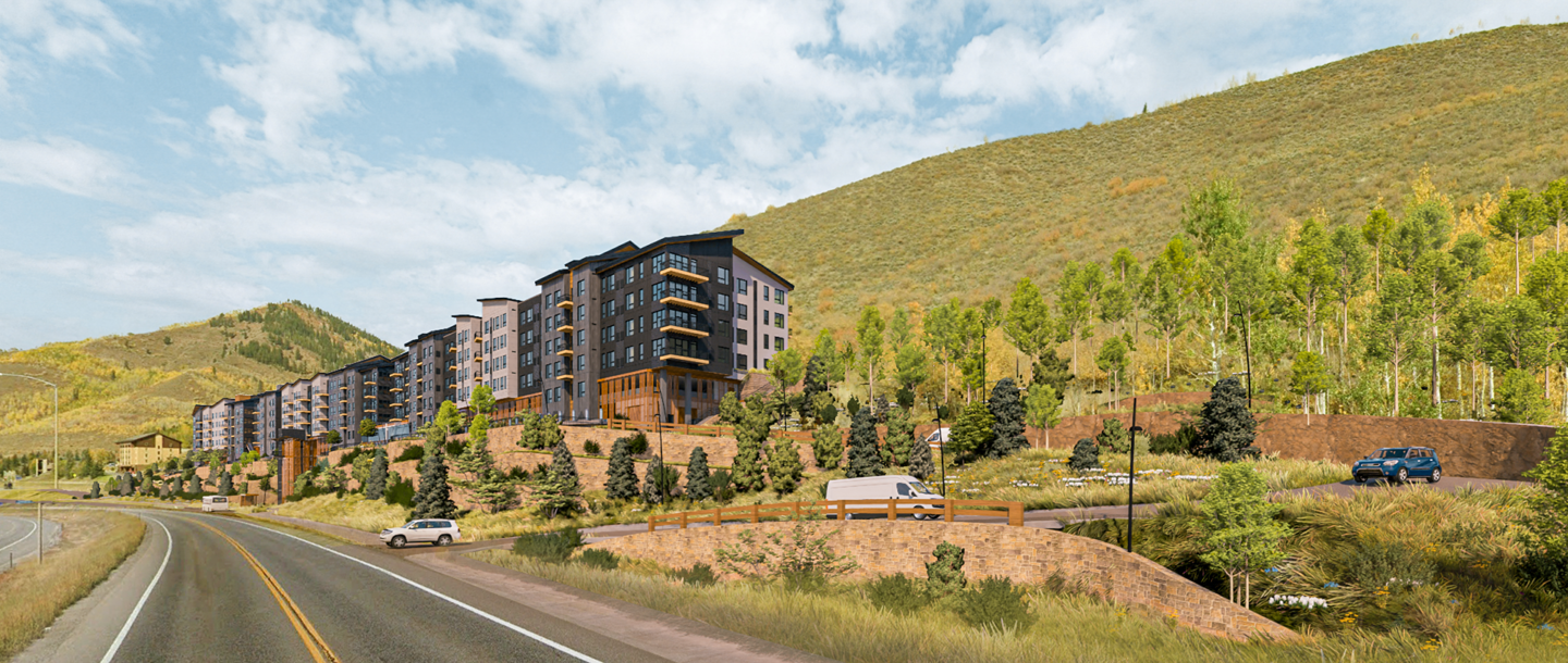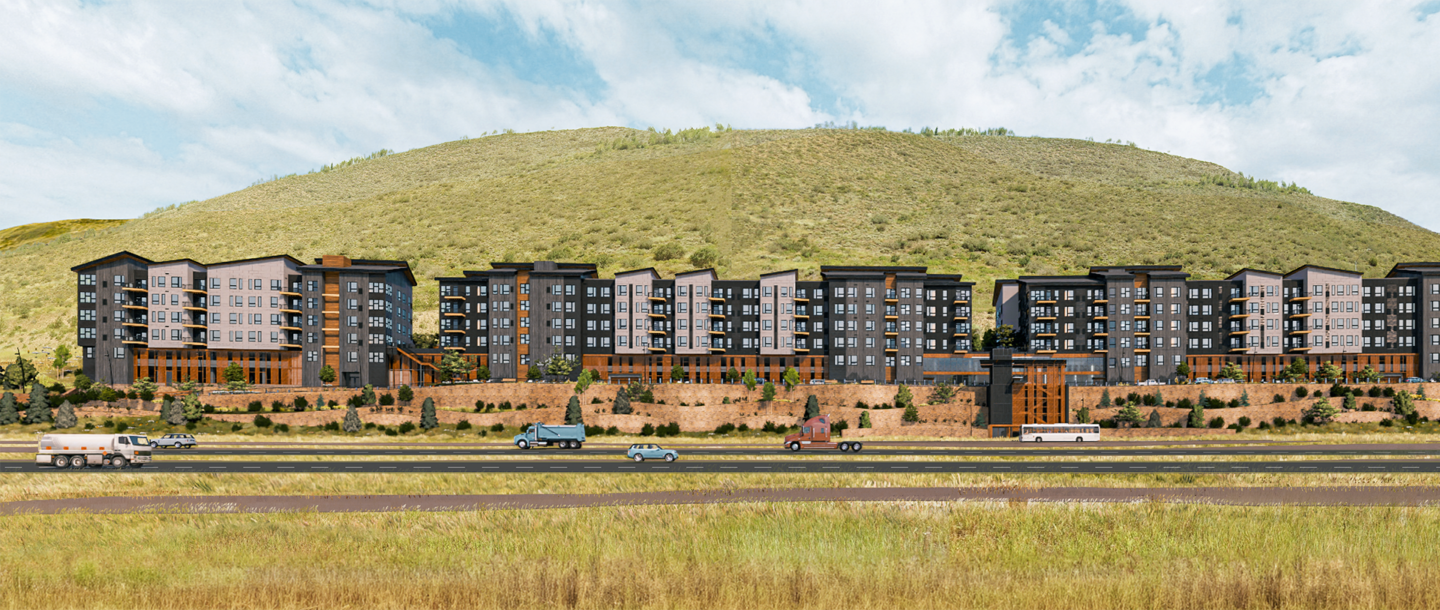West Middle Creek is a multi-family housing project located across I-70 from Lionshead Village in Vail Colorado. The project is a major component in the Town of Vail’s efforts to provide deed restricted housing for the betterment of the community. The project consists of 268 units and 258 parking spaces. In addition, amenities include a fitness center, co-working, and social lounge, and exterior elevated courtyards. The project is sited on a steep mountain-side slope, and the proposed design is derived from a culmination of managing the constraints of the site, creative approaches to earth retention, and prioritizing the quality of the living units. The result is a cohesive yet appropriately scaled design that enhances the quality of the built environment of Vail while addressing its critical need for housing.
