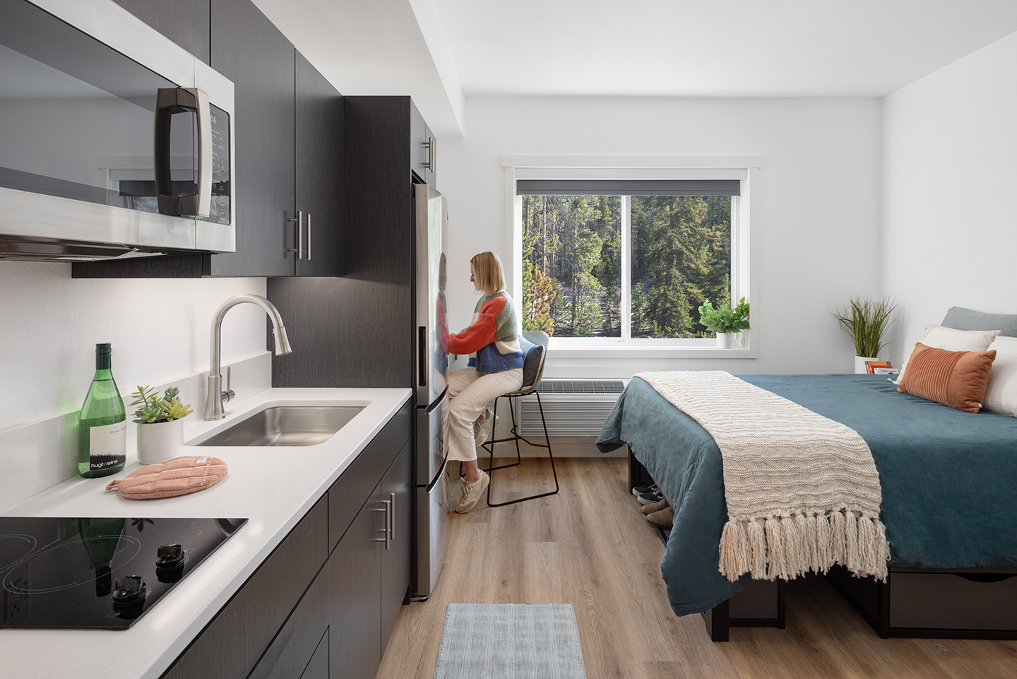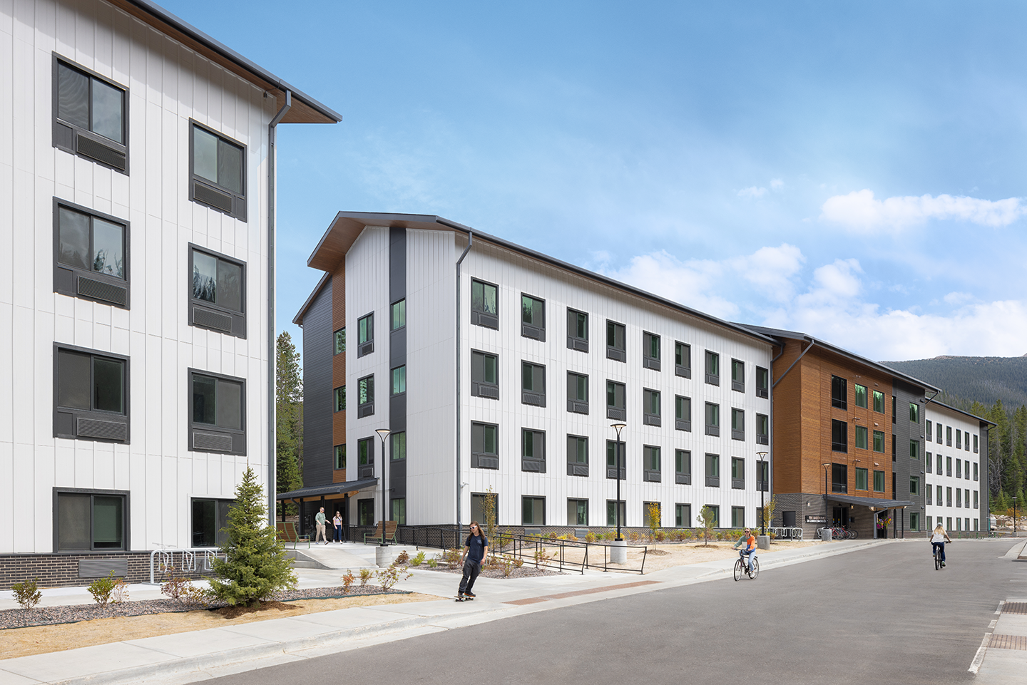 This project utilizes a modular construction approach with almost 200 factory-built “boxes” constructed off-site and shipped to the rugged, mountain location. This building methodology aids in the viability of the accelerated construction schedule and will allow the project to go vertical in a few months, ideal for high-altitude weather and short building seasons.